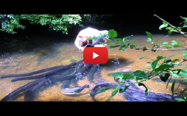 SOCANT!!! O femeie hraneste tiparii electrici direct in apa cu mana ei!!! Ai curajul sa faci asa ceva? cum sa bagi mana in apa langa tiparii aia? lol nu as baga nici pentru 10.000 de euro un tipar poate ajunge la o lungime maximală de 2,5 m și o greutate maximală de 20 kg. Si poate sa produca pana la 700 V descarcare eleectrica.